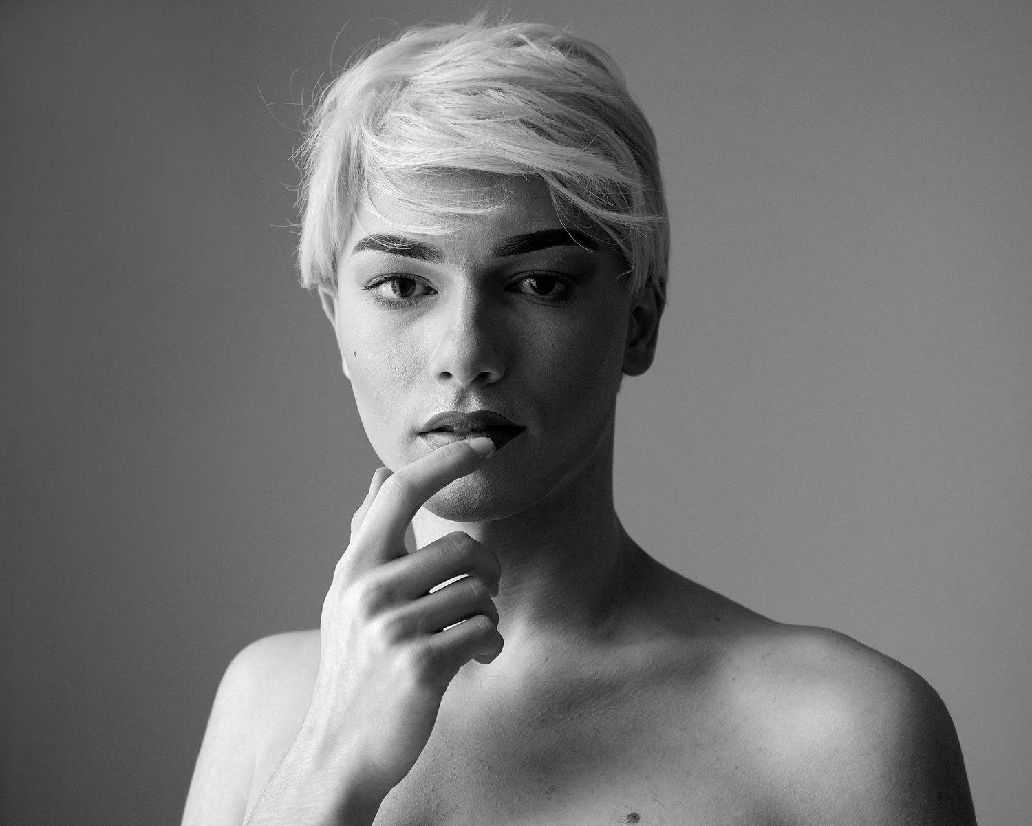 Alessandro Gattuso (Vico Equense, 1989). Regista e fotografo. Laureato in Cinema all’Accademia delle Belle Arti di Napoli. Ha all’attivo due cortometraggi Por cuestion di corazon e Antonio degli scogli. La sua ricerca personale è incentrata su tematiche che riguardano la cultura queer. Nelle opere del progetto Cosmi il corpo è la superficie che funge da cerniera tra interno ed esterno. Egli ne sottolinea la capacità di farsi territorio liminale tra percezione individuale e sociale, tra rappresentazione e autorappresentazione. I giovani soggetti ingaggiano una relazione con chi li osserva, in primo luogo il fotografo, ma in generale noi tutti che ci sentiamo chiamati in causa da questi sguardi, quasi sfidati a prendere atto di una nudità che non è solo fisica.
