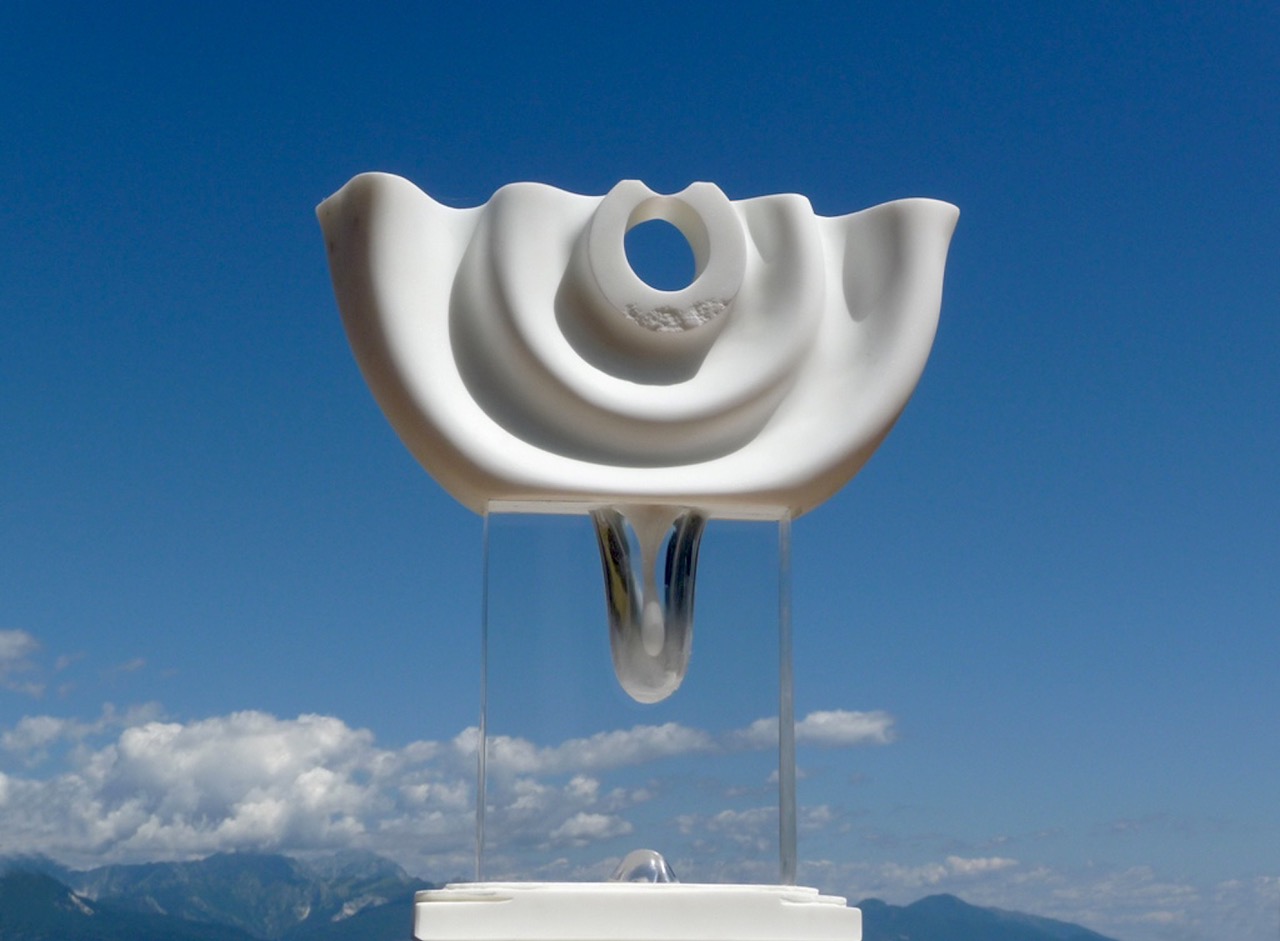 L’interesse che Yoshin Ogata, scultore giapponese, ha per l’acqua risale agli inizi degli anni ’70 e si lega simbolicamente a riferimenti biografici: il ricordo, nella sua primissima infanzia, del potere salvifico dell’acqua nel drammatico evento della presa a fuoco del ristorante paterno e l’esperienza del navigare durante gli anni della prima maturità.
