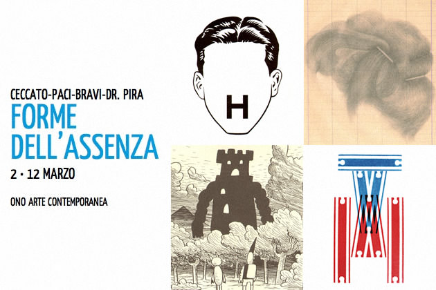 I quattro progetti in mostra evocano un’assenza che può essere oggettiva, simbolica, esistenziale, ma che in qualche modo rappresenta una cartina di tornasole del vivere contemporaneo: l’h muta di Maurizio Ceccato, priva di suono, esprime il concetto di assenza nel suo significato più simbolico; le stampe tipografiche di Ikea® Press, realizzate da Lorenzo Bravi utilizzando oggetti e mobili dall’azienda svedese, mostrano come l’assenza di segno possa permettere la costruzione di un universo semplice, minimale e asciutto, ma estremamente ricco di suggestioni; i ritratti di Valentina Paci presentano una straniante assenza di volto, di cui i capelli sono naturale cornice, fulcro delle emozioni, mentre l’iconografia di Dr. Pira, piena di elementi ironici e nonsense, rimanda all’omologazione e indirettamente all’assenza di identità del nostro presente.