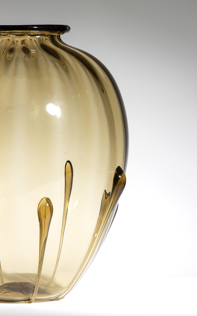 Questa medesima attività, organica e collettiva, ha dato vita alle maggiori fabbriche muranesi dei primi del ‘900. I loro modelli, di cui abbiamo riscoperto l’autorialità grazie agli studi delle ultime decadi, si distinguono per la ricerca condotta dagli artisti sulla purezza delle forme - intesa soprattutto come abbandono dell’ornamento.