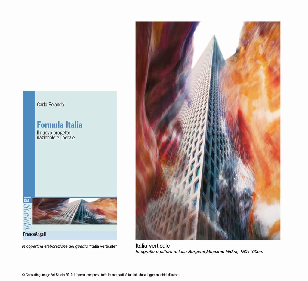 Presentazione del nuovo libro “Formula Italia” (www.formulaitalialibro.it) del Professore ed Economista Carlo Pelanda (insegna scenari globali presso la University of Georgia – USA) accompagnata dalle opere fotopittoriche di Lisa Borgiani e Massimo Nidini. La foto di copertina del libro è l’elaborazione del loro quadro “Italia verticale”. Il nuovo progetto del libro e l’interpretazione delle opere sono visioni verticali di progresso, elevazione, velocità, innovazione come intimo desiderio di ricostruire con orgoglio il nostro futuro.