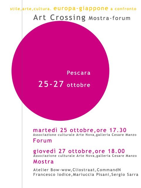 Yoshiaru Tsukamoto e Momoyo Kaijima (architetti e artisti, fondatori del gruppo Atelier Bow-wow di Tokyo), Luca Poncellini (architetto e artista del gruppo Cliostraat), Francesco Jodice (architetto e fotografo), Keitaro Usui (artista, gruppo CommandN , Tokyo), Mayu Hayakawa (artista, gruppo CommandN, Tokyo), Mariuccia Pisani (video artista e performer, Pescara), Sergio Sarra (artista, Pescara).