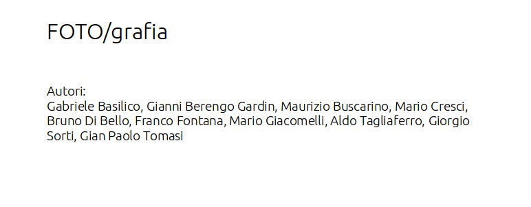 Si prosegue con alcuni autori italiani, considerati alcuni dei protagonisti assoluti della fotografia italiana contemporanea: