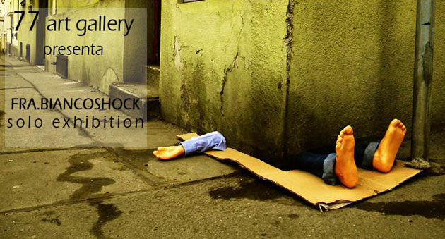 FRA.BIANCOSHOCK è famoso per azioni di urban art effettuate per le strade di tutta Europa. Durante l’esposizione, che terminerà il 16 marzo, saranno presentate documentazioni dei suoi interventi più importanti, circa una ventina tra foto, video-performance ed installazioni. L’approdo in una galleria sarà l’occasione per conoscere da vicino la poetica dell’artista e l’intento sia dei lavori già noti, sia di alcune nuove produzioni. Inoltre sarà presentato il provocatorio manifesto dell'avanguardia artistica chiamata EFFIMERISMO, di cui l’artista è ideatore e promotore . L’EFFIMERISMO si prefigge lo scopo di produrre opere d'arte che esistano in maniera limitata nello spazio ma che persistano in maniera infinita nel tempo sfruttando la fotografia, i video e la viralità dei social networks. Una nuova corrente di pensiero che affonda le sue radici sia nella praticità della street art e che nella modalità espressiva dell'arte concettuale.