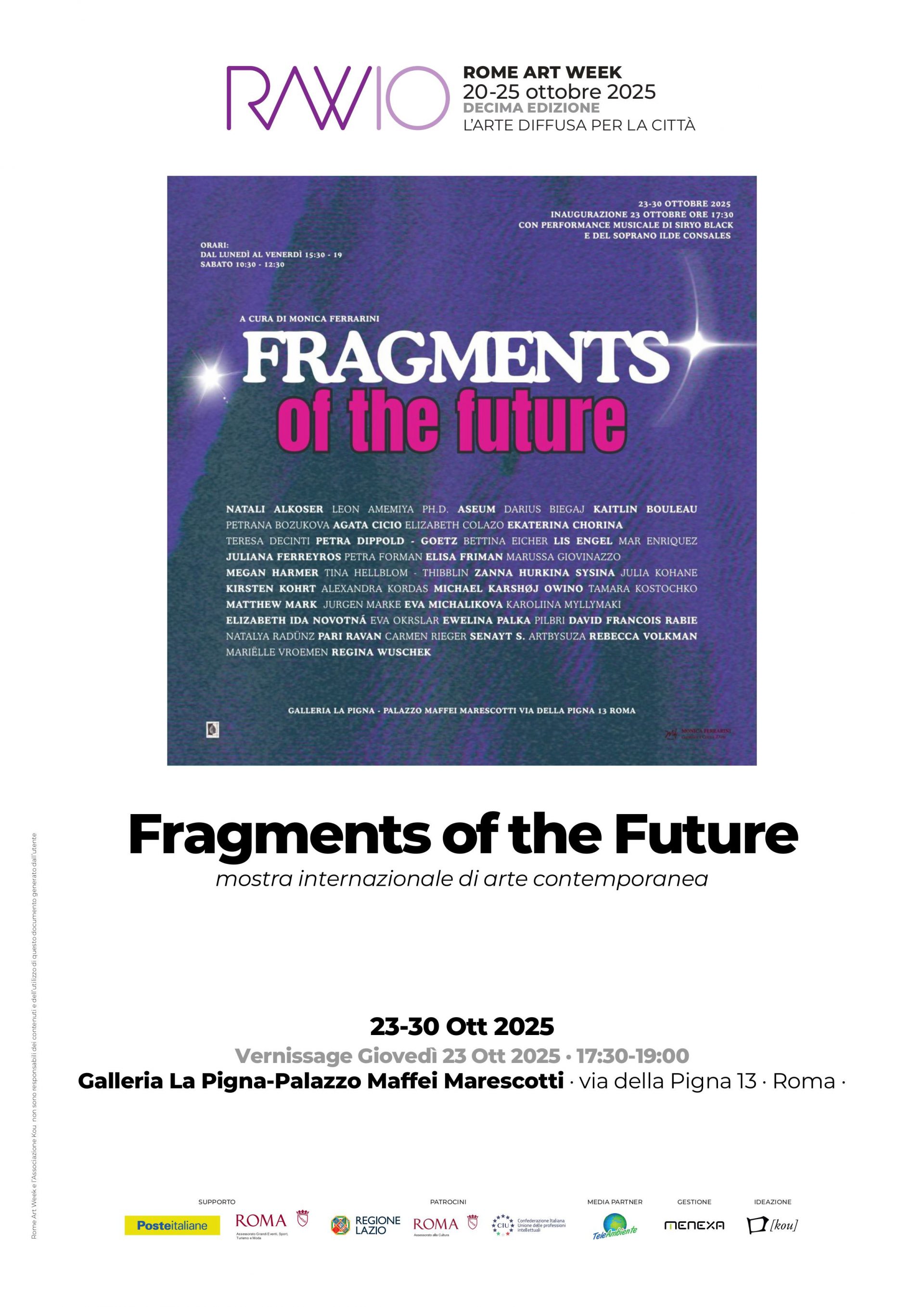 Verrà inaugurata giovedì 23 ottobre alle ore 17:00 la mostra collettiva di arte contemporanea “Fragments of the future” presso la Galleria La Pigna -Palazzo Maffei Marescotti- via della Pigna 13 -Roma.