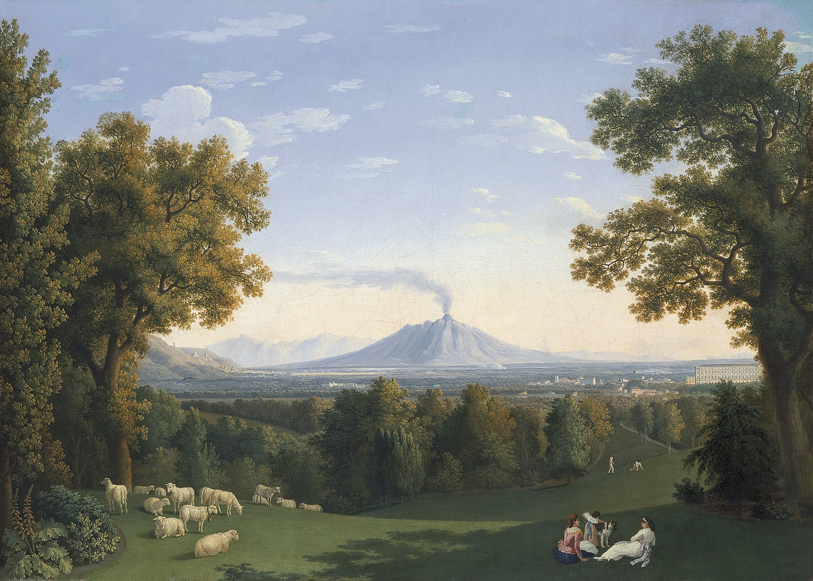 Nell’articolarsi delle sezioni sono presentate numerose opere, in molti casi inedite, provenienti da prestigiosi musei e istituzioni italiane ed europee, oltre che da collezioni private, biblioteche e altri istituti pubblici. Tra i tanti artisti, del calibro di Gaspar van Wittel, Claude Lorrain, Paolo Anesi, Pietro e Gianlorenzo Bernini, Hubert Robert, Hendrick van Cleve III, Jules-César-Denis van Loo, Giusto Utens, Joseph Heintz il giovane e altri celebri vedutisti, un ruolo di spicco spetta naturalmente a Jacob Philipp Hackert che tante opere ha dedicato ai giardini e ai paesaggi campani e dell’Italia meridionale.