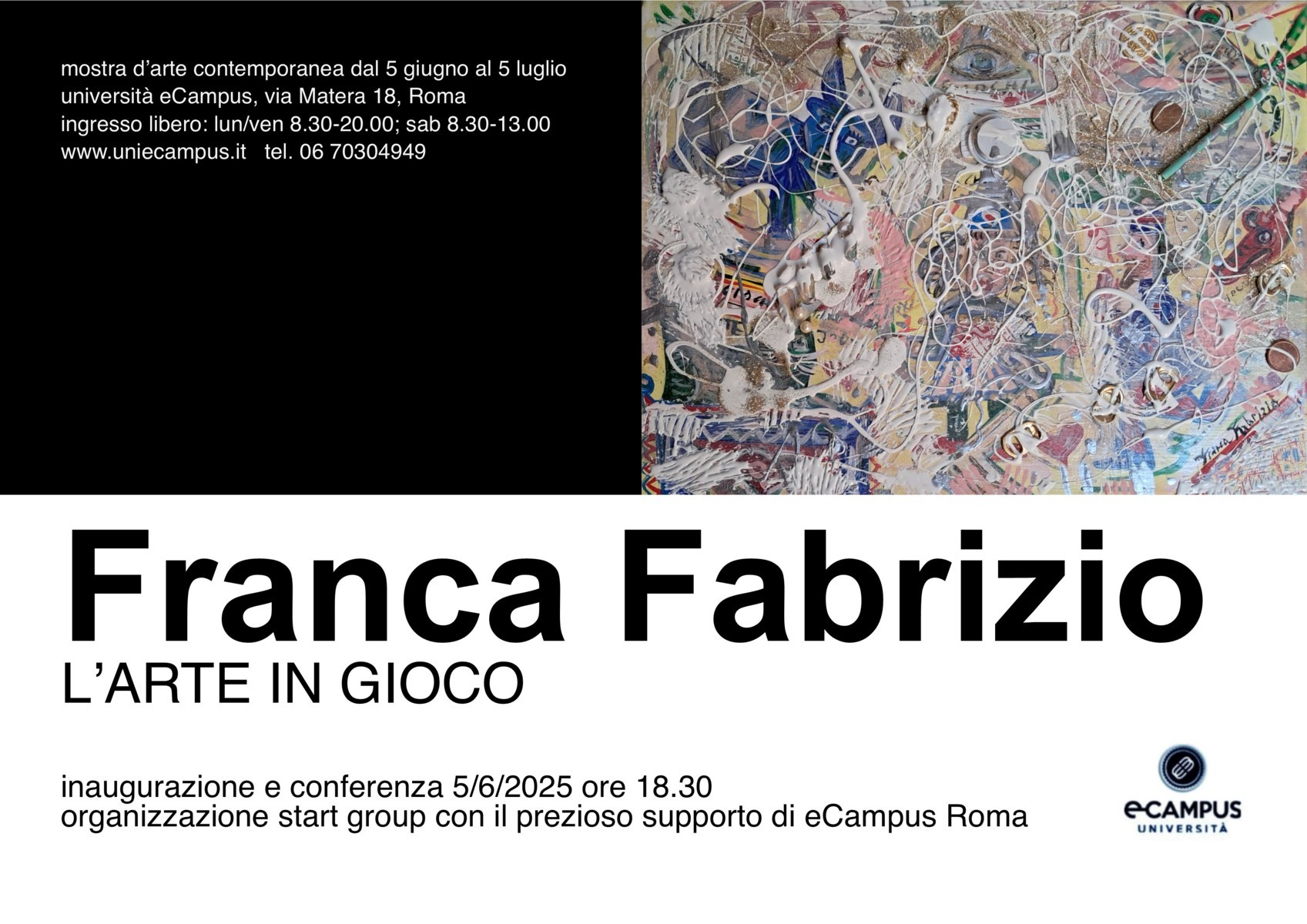 Partirà il 5 Giugno presso l’Università eCampus di Roma un viaggio nel mondo dell’arte e dell’infanzia, intesa come “luogo dell’anima”, alla scoperta di uno stile pittorico, quello di Franca Fabrizio, che sperimenta il linguaggio del sogno e della poesia.