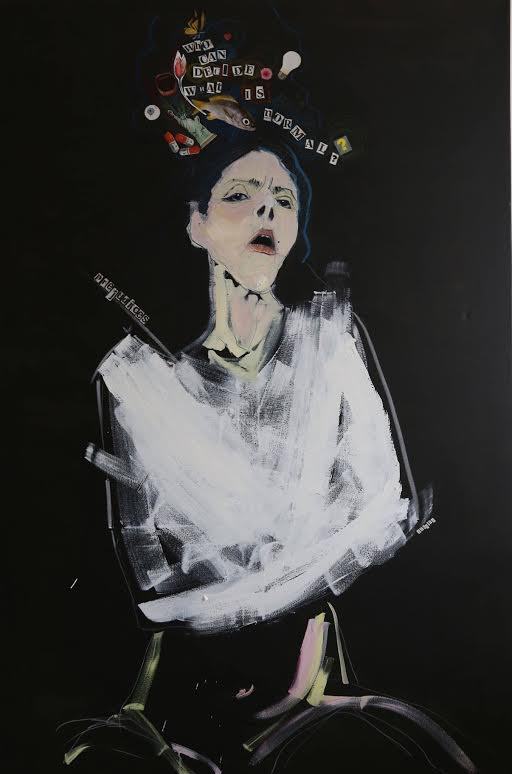 Francesca Candito ci conduce attraverso la sua pittura nell’oscuro mondo della malattia mentale, attraverso immagini che evocano lo stato confusionale, il baratro e l’emarginazione in cui troppo spesso alcuni soggetti sono relegati a vivere. “Mania semplice”, titolo della mostra, vuole scandagliare le varie sfaccettature del disturbo mentale, cercando di sfatare i molti pregiudizi associati a questa condizione di segregazione e desolante vuoto.Le sue opere indagano soggetti toccanti, attraverso corpi e volti definiti con tratto tagliente e spezzato, in una pittura che tende all’essenziale dove la materia si sfalda diventando nebbiosa, lasciando il posto a dettagli ben distinti che caratterizzano i volti dagli occhi penetranti e persi.Francesca affronta questi temi del disagio, dell’emarginazione e dell’abbandono con determinazione, palesandoli senza timori, cercando un dialogo alla rassegnazione.La sua tavolozza crea infiniti toni di grigio intervallati da profondi e bui neri da cui emergono cuori straziati e in cui il dramma viene enfatizzato da rapide pennellate rosso scarlatto e da gialli più pallidi, in cui irrompono lettere, frasi, numeri e simboli, quasi a colmare il silenzio angosciante.