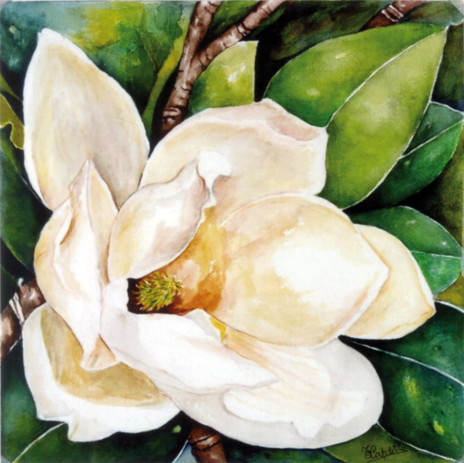 Ma se il fiore della magnolia, nella sua importante dimensione e carnosità, è dipinto con morbide pennellate di beige su un fondo di grandi e lucide foglie, con la stessa passione dipinge i provocanti girasoli, traboccanti di calore e solarità. E le sue ortensie con impalpabili petali, nelle delicate cromie di rosa, bianco e azzurro, affiancate da rose selvatiche bianche, insieme ai giacinti azzurri e alle fragili viole del pensiero, tra i fiori più longevi, tutti insieme palpitano di frescura e leggerezza e ci portano la primavera.