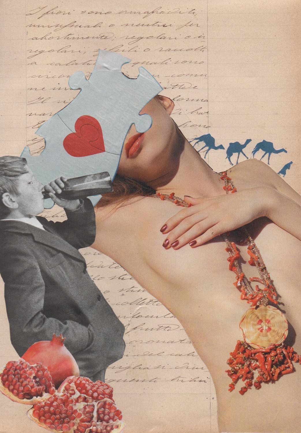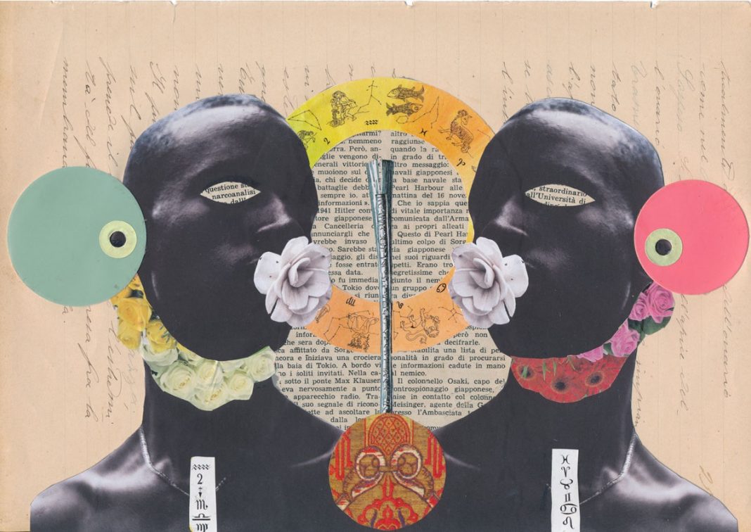 I collage di Donatelli nascono dall'atto fisico e simbolico di ritagliare, strappare e ricomporre. Attraverso materiali quotidiani e immagini raccolte negli anni, l’artista crea composizioni in cui le parti, a prima vista incoerenti, si uniscono in un’armonia inaspettata. È la celebrazione della casualità che diventa ordine. Come tessere di un mosaico, i pezzi si combinano per dare vita a nuove visioni. Sono frammenti di una memoria personale aperti a una narrazione universale: fotogrammi di mondi paralleli, che nascono dall'incontro tra l'improbabile e il familiare.