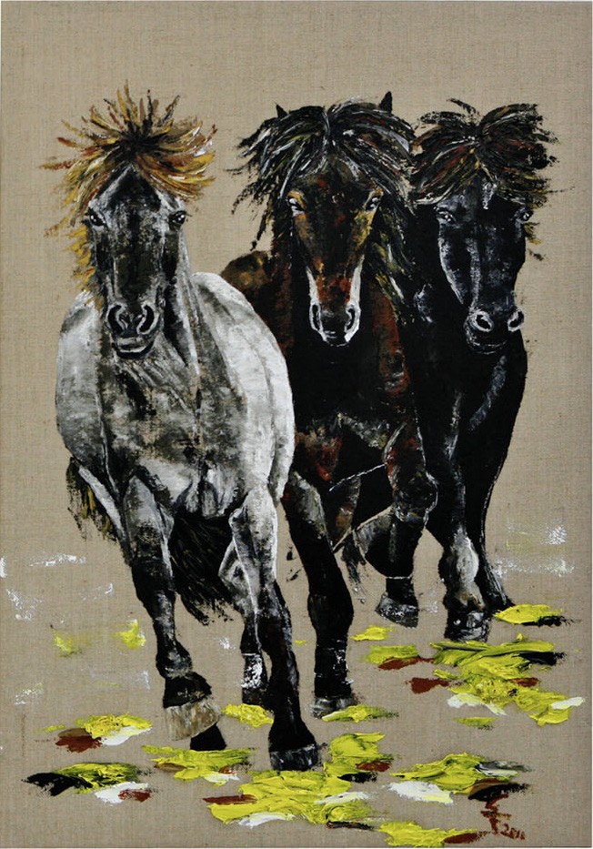 E’ tangibile un forte amore per l’arte nella ricerca di quest’artista, se pensiamo alla dottrina psicoanalica junghiana l’immagine del cavallo ci porta a un’idea di estrinsecazione di sentimenti, pensieri legati all’inconscio, così nella sua produzione popolata da cavalli, mucche, felini fino a spaziare a farfalle e composizioni floreali, riscontriamo anche un’analisi del tutto personale della condizione umana.