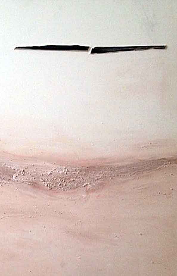 Disperdendo l'inessenziale l'artista conduce una sorta di polverizzazione diffusa, la ricerca di una diversa identità vissuta come occasione in cui orientare una possibile dimensione priva di misure o costrizioni.
