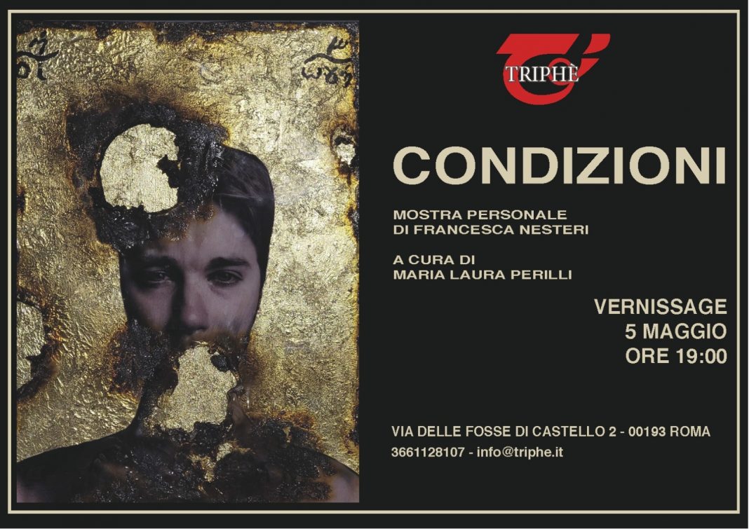 La galleria Triphè presenta “Condizioni ” , mostra personale di Francesca Nesteri ,giovane artista dal percorso professionale ad alta identificabilità. Esposizione di “icone” e “sovrastrutture ” contraddistinte dall’uso di materiali vari (primo fra tutti l’oro) .