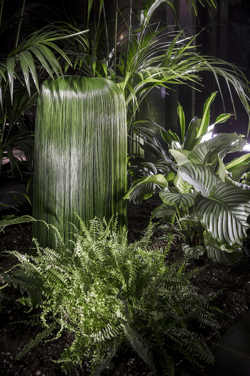 Hanno fatto un lungo percorso di trasformazione anche i materiali di cui, a ben guardare, sono formate le opere: lunghi filamenti di setole in PVC verde brillante, e centinaia di migliaia di cannucce colorate. Le prime si affastellano e scendono a terra, a formare sculture polimorfe che inevitabilmente dialogano con le forme organiche alle quali sono ispirate e che troveranno perfetta realizzazione nella più completa e imponente installazione ambientale Labirinto, realizzata per CUBO e visibile a breve. Testimoni indisturbati di una vita misteriosa, le opere portano con sé il fertile mondo immaginifico di Francesca Pasquali che, da sempre, nella sua indagine coniuga l’emozione della scoperta delle trame naturali con l’esperienza attenta delle pratiche processuali, operando nell’ambito della tessitura, dell’intreccio, dell’accumulo e dell’assemblaggio di materie plastiche, in un’ottica di trasformazione positiva del loro ruolo e di una metamorfosi estetica della loro funzione.