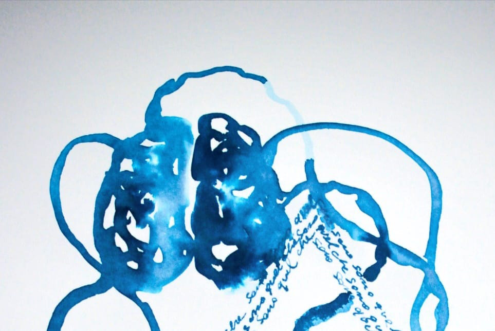 Nella delicatezza e porosità del supporto cartaceo, scrittura e pittura creano, dalla dualità, un’unità dinamica e continua che appare come realtà intrinseca in rapporto di reciprocità tanto fisica, quanto cerebrale.