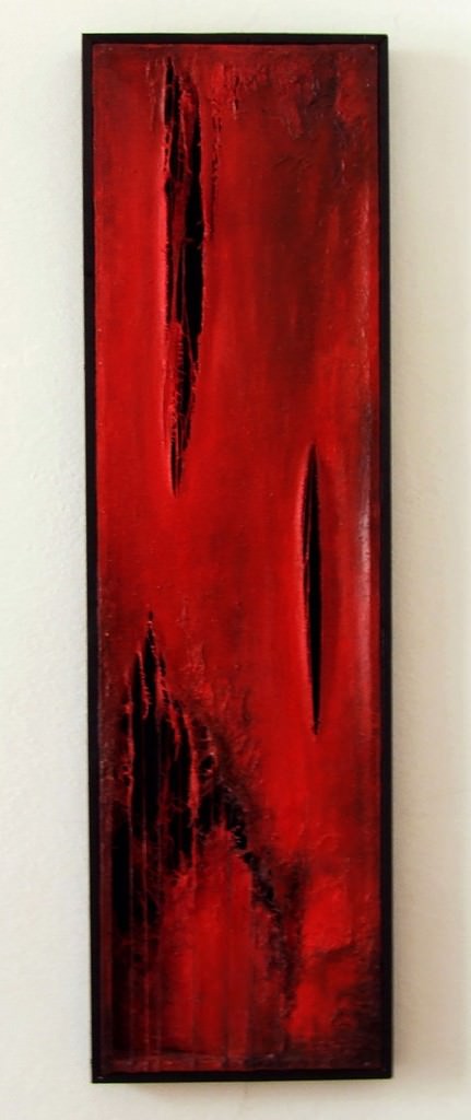 La passione per il disegno, per lo studio della figura umana si trasforma fin dal primo anno accademico (Accademia di Belle Arti di Firenze) in uno studio del colore della sua creazione e ancora nel più profondo del suo significato, quello psicologico, spesso inavvertibile che essi racchiudono e che svelano soprattutto nel loro utilizzo. La tela, il suo impiego va oltre il semplice supporto pittorico…. le sue trame vengono lacerate, tagliate strappate… assumono una nuova forma spesso indefinita; ricostruita diviene uno spazio dinamico, fragile dissolto nei suoi frammenti che svelano l’anima sensibile dell’ essere materico. Aspetti studiati e sperimentati soprattutto da artisti dell’ Informale come Burri e Fontana a cui l’artista molto si ispira. La materia svela così la sensibilità estetica della sua essenza, la sua poeticità; assume un corpo, movimento, uno spazio profondo messo in evidenza dal colore che contribuisce a creare ora atmosfere forti inquietanti ore più pacate. Una ricerca che và oltre i limiti del figurativo, che vuole riscoprire la bellezza e lo spirito della forma, della materia analizzandola in tutte le sue presenze
