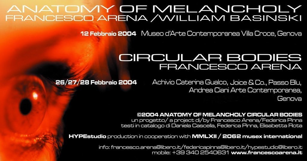 Il progetto si sviluppa con una incursione “solista” di Francesco Arena in sei gallerie di Genova dove verrà presentato il video ” Circular Bodies” con la colonna sonora di William Basinski, e dove verranno esposte installazioni fotografiche tratte dal video.