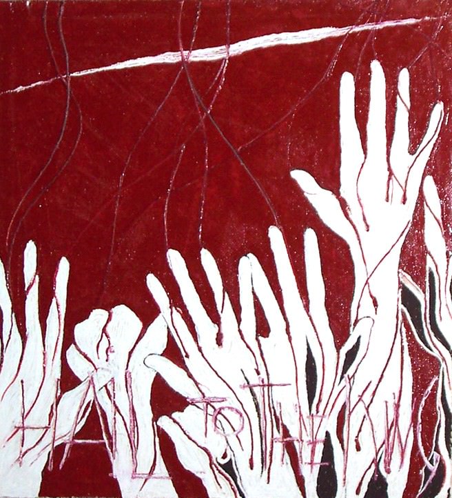 Un’immagine autentica perché tramite tra cielo e terra, pretesto narrativo per esprimere, con uno stile tendenzialmente astratto-espressionista fondato su tinte nette e primarie una chiara denuncia del clima effimero e corrotto della nostra fase storica.