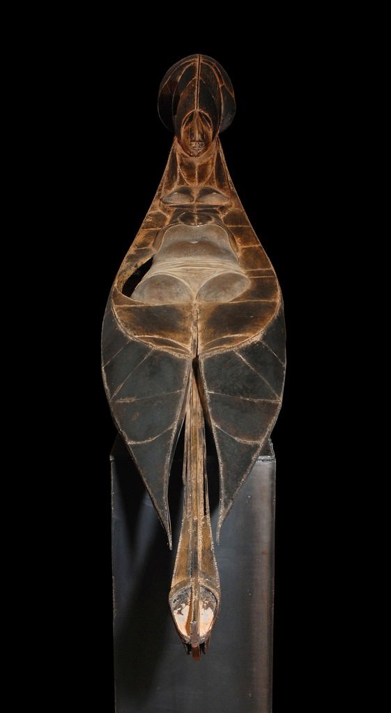Per questa mostra l’artista ha appositamente realizzato tre imponenti “teste”
