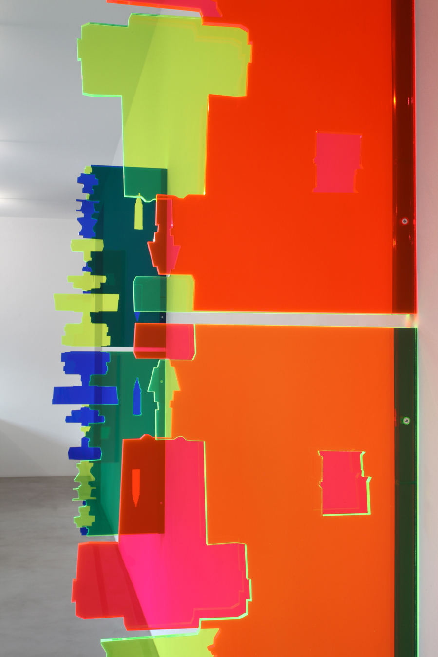 Nella prima sala del piano superiore sono esposti, nella versione verticale, alcuni "skyline" di città in plexiglas o sezioni di esse rese come superficie e contorno - visioni di un “architetto dell’immateriale” e insieme testimonianza del vissuto dall’artista.