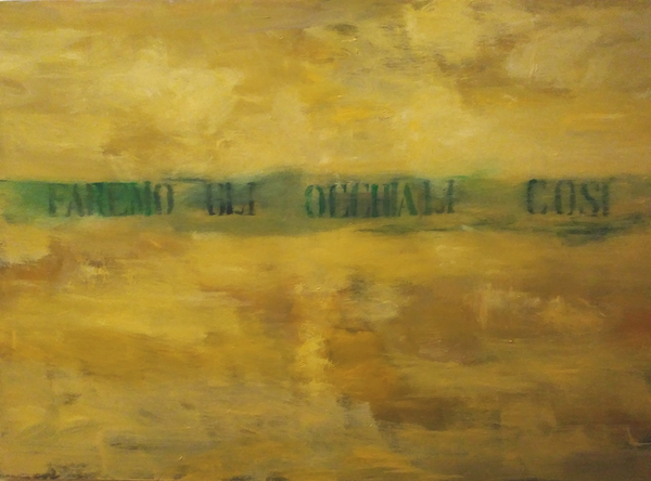 Una nuova mostra in galleria di Francesco Correggia dal titolo Try this lens in occasione della quale sarà presentata la produzione più recente dell’artista. Per rimarcare il percorso pittorico di Correggia all’interno delle problematiche relative alla pittura scrittura sono presenti in mostra alcune opere degli anni Settanta / Ottanta nell’intento di attraversare lo sviluppo della sua ricerca artistica, visiva ed estetica. Il rapporto fra testo, pittura e scrittura è sempre stato fondamentale nell’opera dell’artista come anche l’importanza del pensiero filosofico nella costruzione dell’opera pittorica. Il corpo del testo poetico e filosofico s’incrocia con quello della pittura rompendo i margini di una visione tradizionale che vuole essenzialmente una pittura che opera sull’ottica, sulla visibilità. Francesco Correggia pazientemente opera negli interstizi della visione fra parola e paesaggio, testo e immagine, numeri e spazio, proposizione ed evocazione pittorica. E lo fa guardando alla storia della pittura, alla sua deriva romantica ancora inesplorata, da Turner a Cézanne. L’occhio, sembra volerci dire Correggia, non guarda bene le cose poiché è preso dalle apparenze e dalla velocità con cui vogliamo percepire la realtà che ci circonda. Bisogna pensare al non vedere per decifrare la realtà delle cose e ricercare quella verità di cui parlava Jacques Derrida; forse ancora decostruire l’idea di una visione chiara e distinta delle cose del mondo. Dunque, occorrono altre lenti con cui guardare il mondo. Provarle queste lenti, finché la luce trasformerà tutto il mondo in giocattolo, in vera presenza. Allora faremo gli occhiali così recita la poesia Dippold, l’ottico di Edgar Lee Masters.