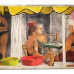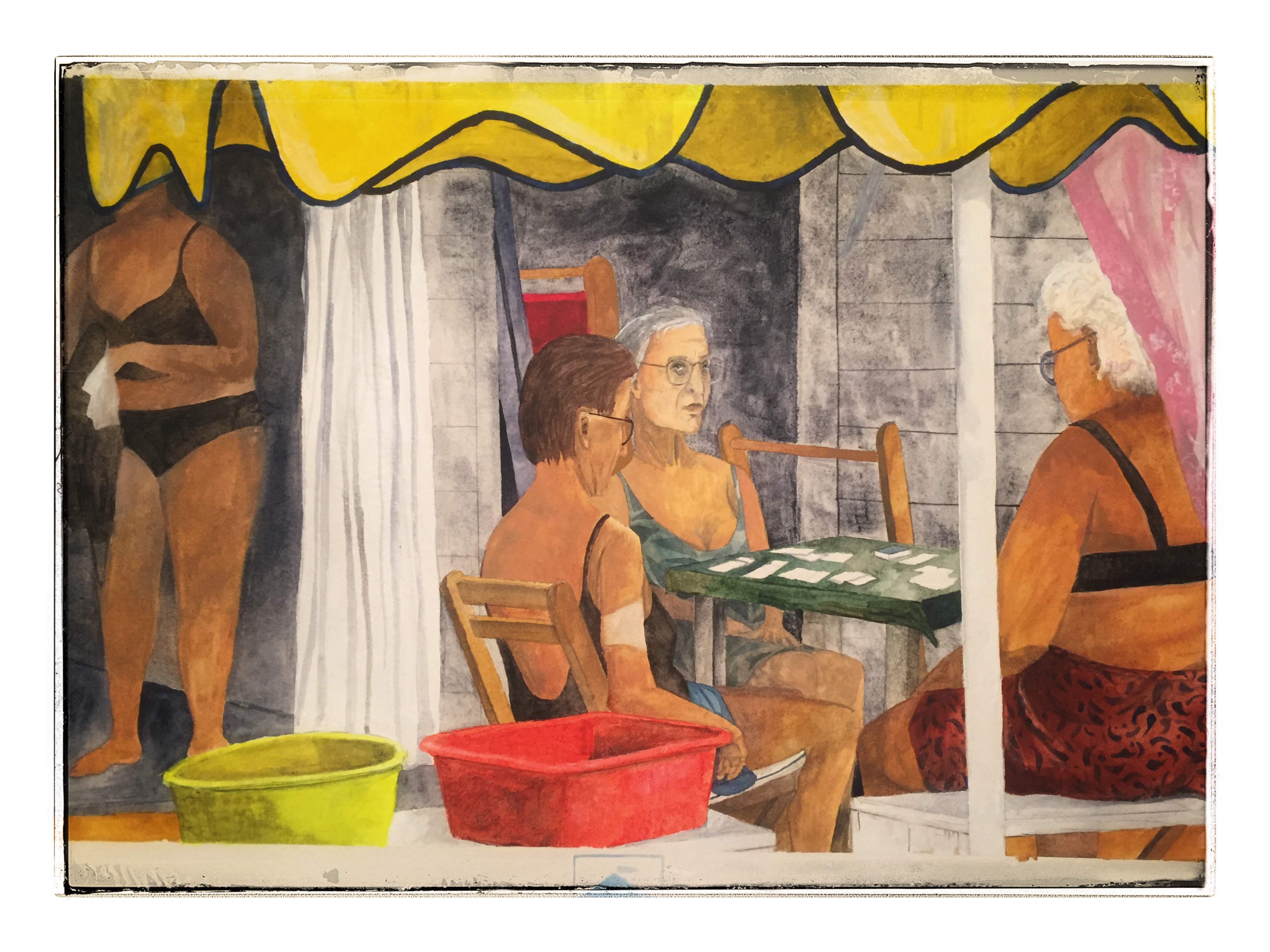Sono poi allestiti tre acquarelli di grandi dimensioni che narrano, oltre alla bravura