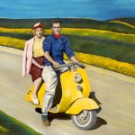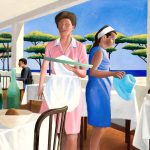 Le tele esposte raccontano storie di un territorio - quel nastro continuo di pianura dalla bassa Lombardia all’Emilia – dove è profondamente radicata una tradizione fatta di luoghi e personaggi che tutti noi conserviamo nel nostro immaginario. Le microstorie di quartiere con i suoi protagonisti, improbabili attori nella scenografia della vita, fanno da contrappunto a ricordi di viaggi lontani, dalla Liverpool trasognata in atmosfere silenti alla Hopper, alle sterminate distese delle praterie americane nelle quali il ricordo della letteratura on the road si lega indissolubilmente a quello personale, autobiografico. E poi ci sono il mare, soprattutto l’Adriatico, e la Romagna, con la dimensione feriale e quotidiana delle tipiche pensioni romagnole e delle cabine di legno dei bagni di una volta.