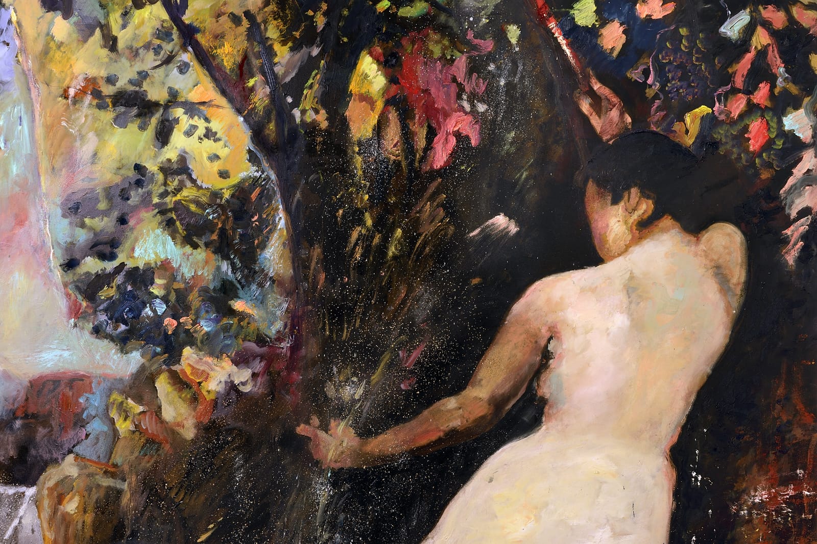 Francesco Lauretta therefore dives into the imaginary world of bathers, immersing himself in history, swimming among myths, legends, purifying rites, absorbing inspirations which he will then transmit on canvas and paper, reinterpreting a story or conversing with an old master, just like in the works