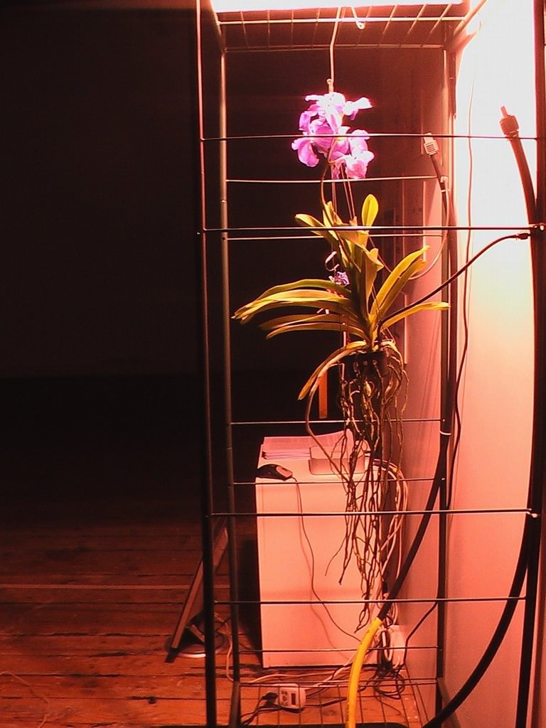L’installazione è costituita da una struttura metallica all’interno della quale si trova un fiore d’orchidea vanda cerulea collegata mediante sensori a uno psicogalvanometro, misuratore dell'elettricità galvanometrica di un corpo, nel caso specifico del tessuto della pianta, in quanto si ipotizza che l’attività galvanometrica sia influenzata dal metabolismo della pianta stessa; lo psicogalvaometro a sua volta è collegato ad Arduino che traduce gli impulsi elettrici in Max Msp, che è codificato in modo da andare a richiamare una serie di sonorità, di note e di rumori nella ram di un computer, che amplifica la sequenza dei suoni, mettendo in scena una vera e propria musica, cioè il linguaggio poetico della pianta. Ai suoni infatti prodotti dall’orchidea corrispondono determinati stati fisiologici della stessa, dando così vita a una sorta di comunicazione pianta - uomo. Per comprendere ancora meglio tale comunicazione, Monico mette a disposizione del fruitore un paper, che ci consente di inserire l’installazione in un contesto culturale, evidenziando come le piante e la natura possono essere considerate alla stessa stregua dell’individuo; la documentazione si addentra in questioni etiche, per poi analizzare la comunicazione delle piante, terminando con una spiegazione riguardante la realizzazione del meccanismo concettuale vero e proprio.