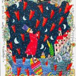 Mi aggiro tra le sale di una mostra in un orario notturno, quando le sale della galleria non contemplano nessuna presenza, se non quelle degli addetti ai lavori. Come in sogno tutto è quieto, immobile, silenzioso. Il respiro della notte apre la via della comprensione più profonda, quella che svela i segreti dell’animo umano. Lasciarsi condurre da una brezza ignota, capace di insegnare a volare a chiunque abbia l’ardire di lasciarsi trasportare, sembra l’unico anelito possibile. Scivolo tra colori che in natura rimangono inascoltati, che nelle opere rifulgono in tutta la loro pienezza; mi addentro tra linee dalla profonda propensione narrativa, capaci di raccontare storie senza tempo, in cui attecchiscono e germogliano i desideri di ciascuno. Sorvolo tetti di edifici che racchiudono storie di amori mai avvenuti, di sentimenti inconfessati, incontri sospirati; mi chiedo cosa accadrebbe se solo fosse vero. Sono certa che sia notte, perché la luna mi sorride, tuttavia sono altrettanto certa che non si tratti di questo mondo, perché è più di una ad affacciarsi da cieli luminosi. Raccolgo un cuore da un albero che li offre, frutti spontanei da assaporare in un mondo dove imperi, sovrana equilibrata e giusta, la serenità interiore. Ho un sussulto. Mi ricordo di essere davanti a opere di due maestri capaci di dialogare sul tema dell’onirico, del sentimento, dell’eterno: Luca Dall’Olio e Francesco Musante. Le assonanze intime permettono di seguire un percorso coerente, che in entrambi i casi porta alla luce un mondo interiore complesso e ricco di sfumature, da indagare prima con l’anima e, solo in un momento successivo, con l’occhio. Luca Dall’Olio, instancabile viaggiatore, artista, poeta, trattiene nel suo sguardo adulto l’innocenza dell’infanzia, condensando sulla tela infiniti spazi, paesaggi di un’anima che agogna assolute e delicate alchimie, bene condensate in una ricerca formale che rivela una profonda comprensione delle più intime ragioni dell’arte, quelle che la realtà non conosce. Tra i cieli, lo sguardo è libero di spaziare, alla ricerca di un sogno che gli appartenga, che possa raccogliere senza essere visto. Francesco Musante, artista dalla squisita sensibilità pittorica, abile disegnatore, funambolo del cuore, crea un universo che è specchio della propria raffinatezza e lo abita in punta di piedi, con libertà espressiva, invitando ciascuno a ritrovare le chiavi per accedere a quella dimensione fantastica a cui da bambini si accedeva con maggiore facilità, che era fonte di infinita gioia. Echi della poetica pittorica di Chagall e Mirò si affacciano in un colto vocabolario di forme, capace di originare un linguaggio tanto immediato quanto enigmatico. Ascolto l’eco dei miei passi risuonare tra le sale vuote, lascio che le dita scorrano sulle cornici, diano gli ultimi ritocchi. Non si tratta di passare da una dimensione all’altra: nell’incontro con l’arte i confini si assottigliano, permettendo al sogno di farsi realtà, alla realtà di mutarsi in sogno. Chiudo la porta, spengo la luce, guardo il cielo. La luna stasera mi sembra fuori posto, ma forse è lì che deve stare.