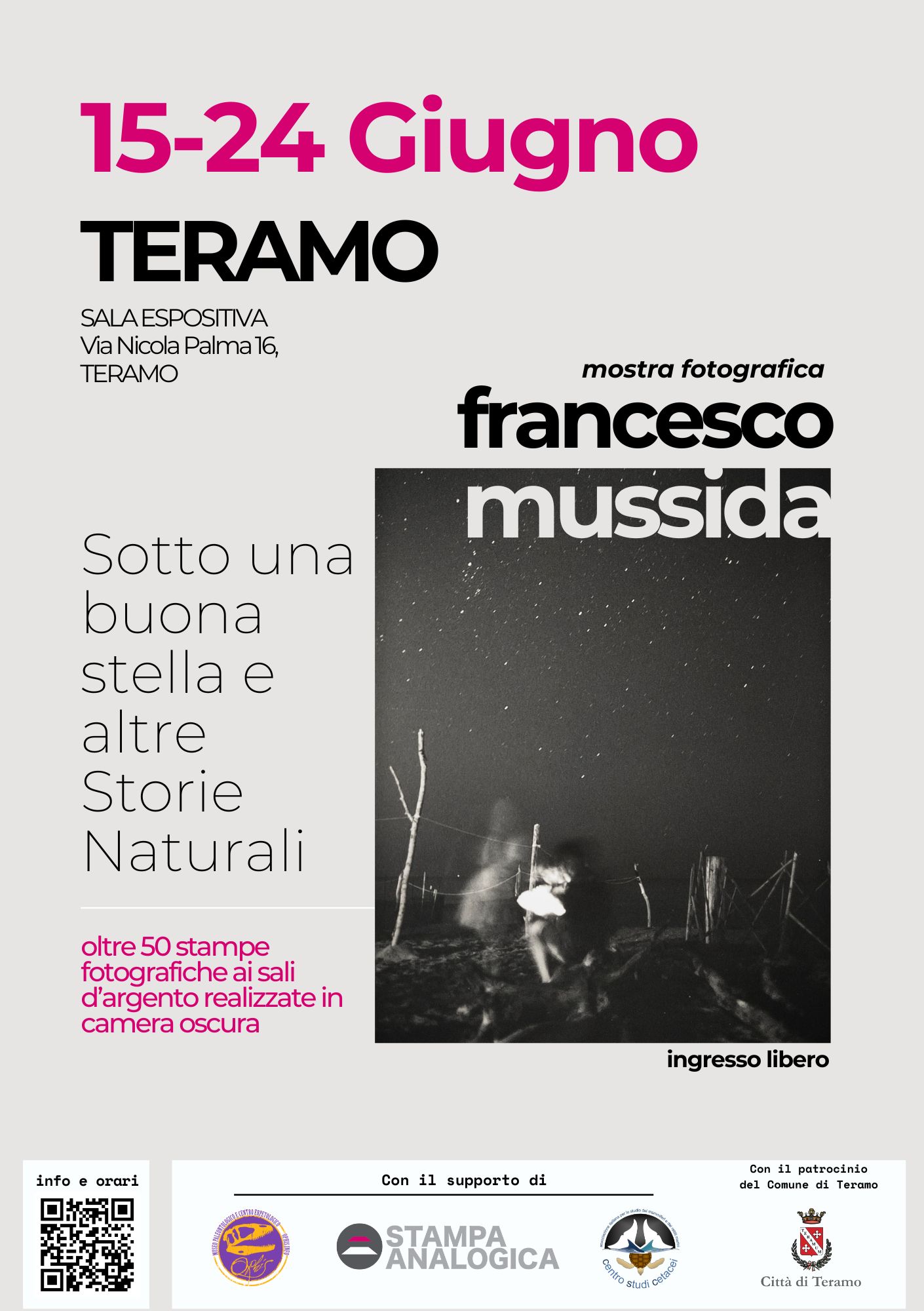 TERAMO. Sabato 15 Giugno 2024, dalle 18.30 alle 21.00, presso la SALA ESPOSITIVA di Via Nicola Palma 16, si inaugura la mostra fotografica “Sotto una buona stella e altre Storie Naturali”, prima personale del fotografo Francesco Mussida.