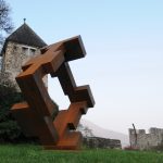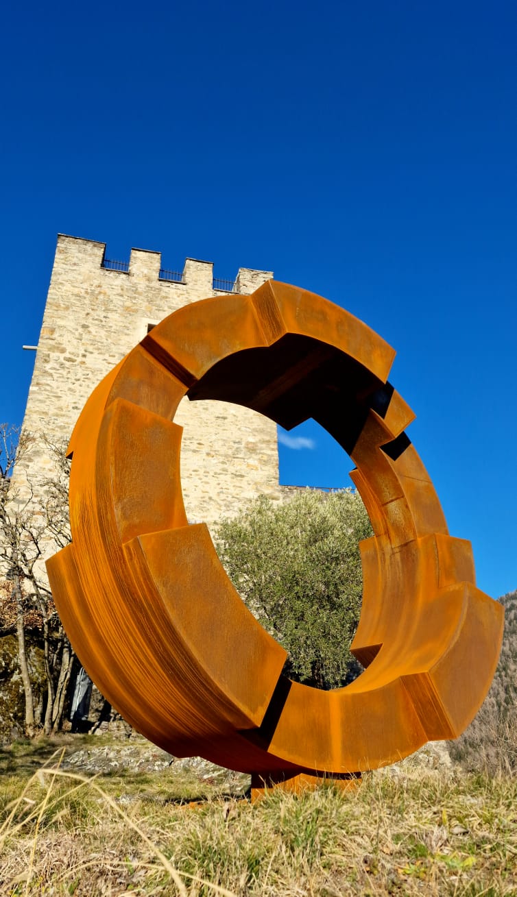“SPAZIOTEMPO” di Francesco Panceri propone al pubblico un emozionante viaggio nel mondo dell’infinito attraverso il dialogo tra la materia e il vuoto con un linguaggio evocativo delle forme monumentali geometriche astratte in ferro e in pietra trentina.