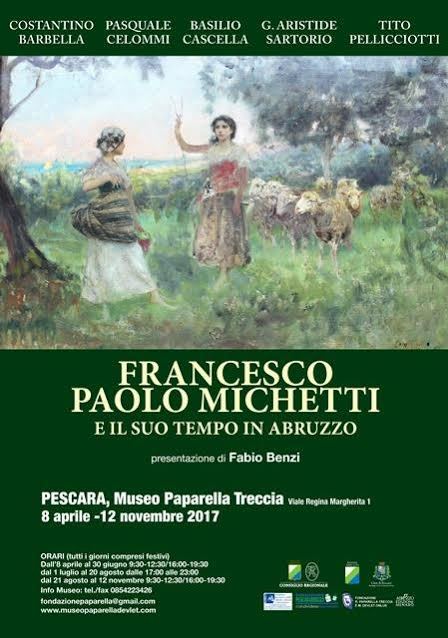 Sono esposti 21 significativi dipinti di Michetti posti a confronto con opere di Pasquale Celommi, Basilio Cascella, Giulio Aristide Sartorio, Tito Pellicciotti e Costantino Barbella, artisti coevi a Michetti e a lui legati da grande amicizia, consueta frequentazione e attiva collaborazione. Fanno parte della mostra anche loro lettere manoscritte, a testimonianza diretta del fitto rapporto epistolare che li legava; sono esposti, inoltre, diversi documenti dell’epoca e spartiti musicali originali di Francesco Paolo Tosti, le cui copertine sono illustrazioni cromolitografiche eseguite dallo stesso Michetti. Il catalogo della mostra è curato dal Professor Fabio Benzi, massimo esperto italiano dell’opera michettiana.