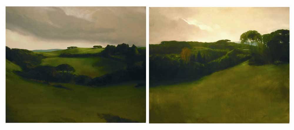 Ognuna delle opere esposte rappresenta una tappa di questo percorso. Come è evidente nel simbolismo apertamente dichiarato dei nudi o in quello più insinuante e sottile di certi arcani paesaggi che Giuseppe Appella pone al centro della rassegna: sintesi formali o tagli d’immagine di luoghi reali trasportati dalla contemporaneità a una dimensione al di fuori del tempo. Campidoglio, Circo Massimo, Villa Torlonia e Augusteo, diventano, con Villa Borghese, Foro Italico, Villa Pamphili e le rappresentazioni della Valle di Grottarossa, luoghi del mito.