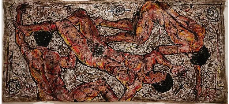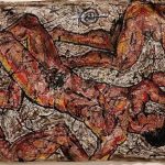 Romano, classe 1986, materico, predilige l’uso di materiali “non convenzionali” per le sue opere come l’asfalto e la juta, la sua è una ricerca della perfezione nell’imperfezione: il contrasto di corpi e figure appena abbozzate che sembrano emergere dalla juta, la forza materica dell’asfalto, l’uso di materiali inconsueti, queste sono le caratteristiche pittoriche di Francesco Patanè.