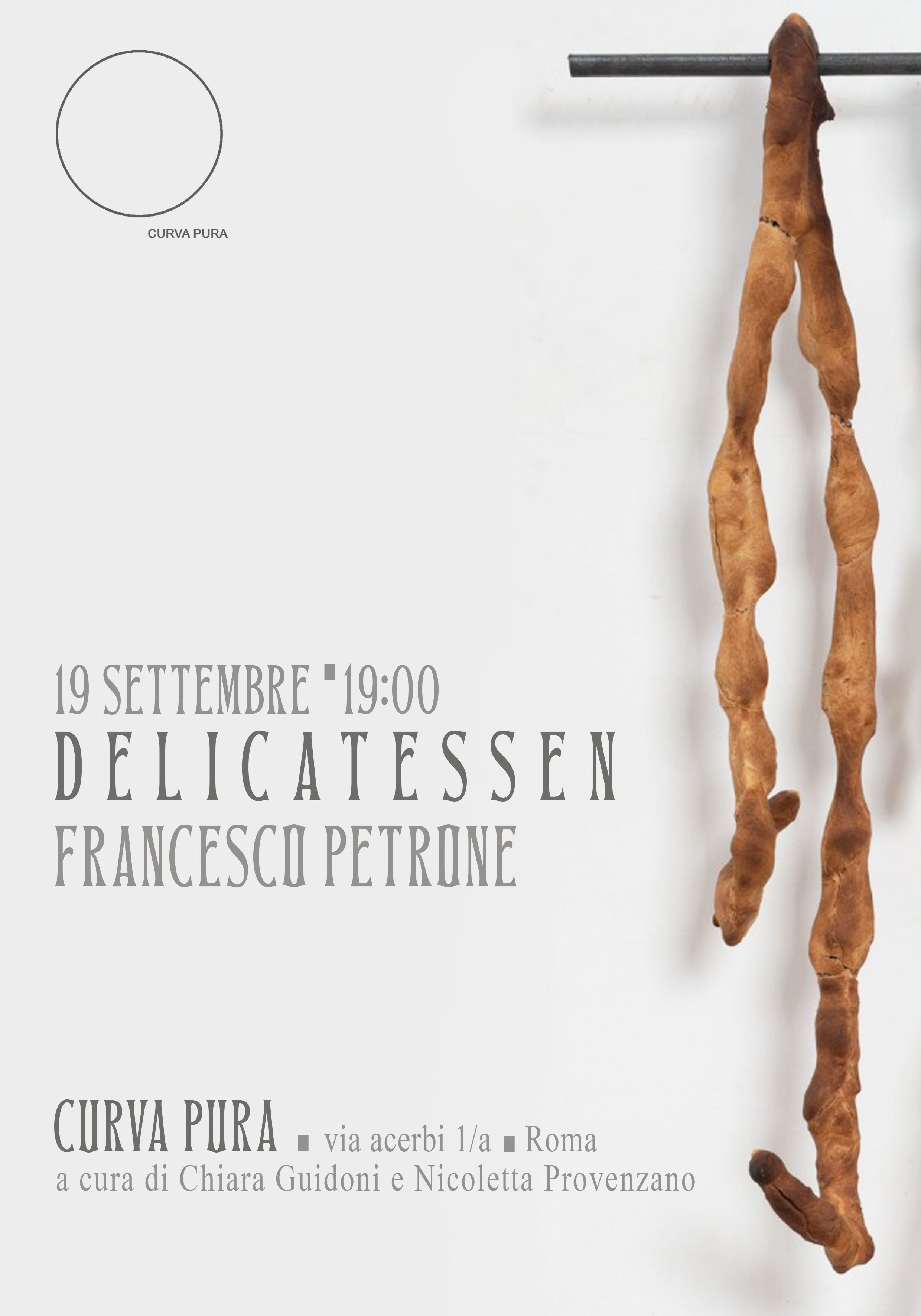 Curva Pura è lieta di annunciare la mostra personale di Francesco Petrone, Delicatessen, a cura di Chiara Guidoni e Nicoletta Provenzano, che inaugurerà giovedì 19 settembre alle ore 19:00 presso la sede della galleria, in via Giuseppe Acerbi 1/a, Roma.