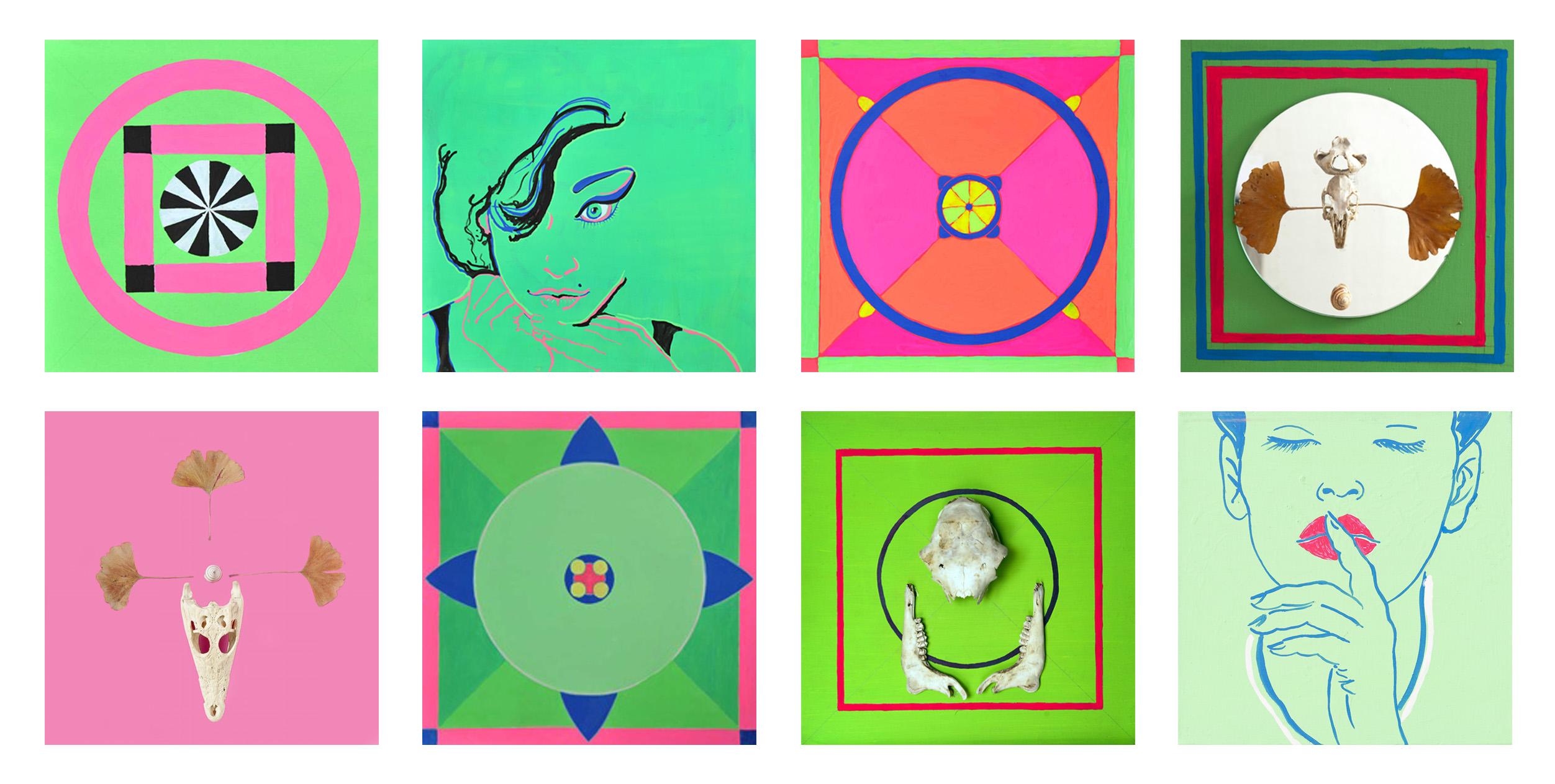 sempre con tecnica mista: foglie vegetali, conchiglie marine, specchi, ossa, crani umani o di