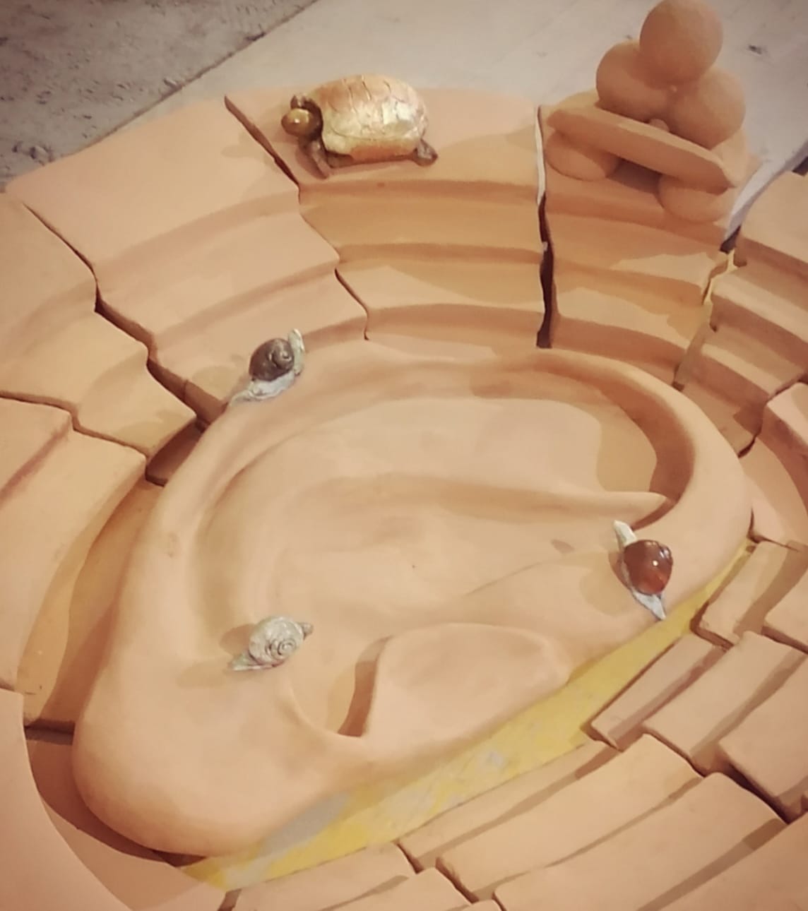 L’installazione rappresenta un’utopica piazza a forma di orecchio gigante arricchita da raffigurazioni di tartarughe e lumache (elogio alla calma e alla meditazione), dalle tre sfere di San Nicola (inno alla generosità e alla pace) e da tre libri (cantico all’accettazione di sé e degli altri)