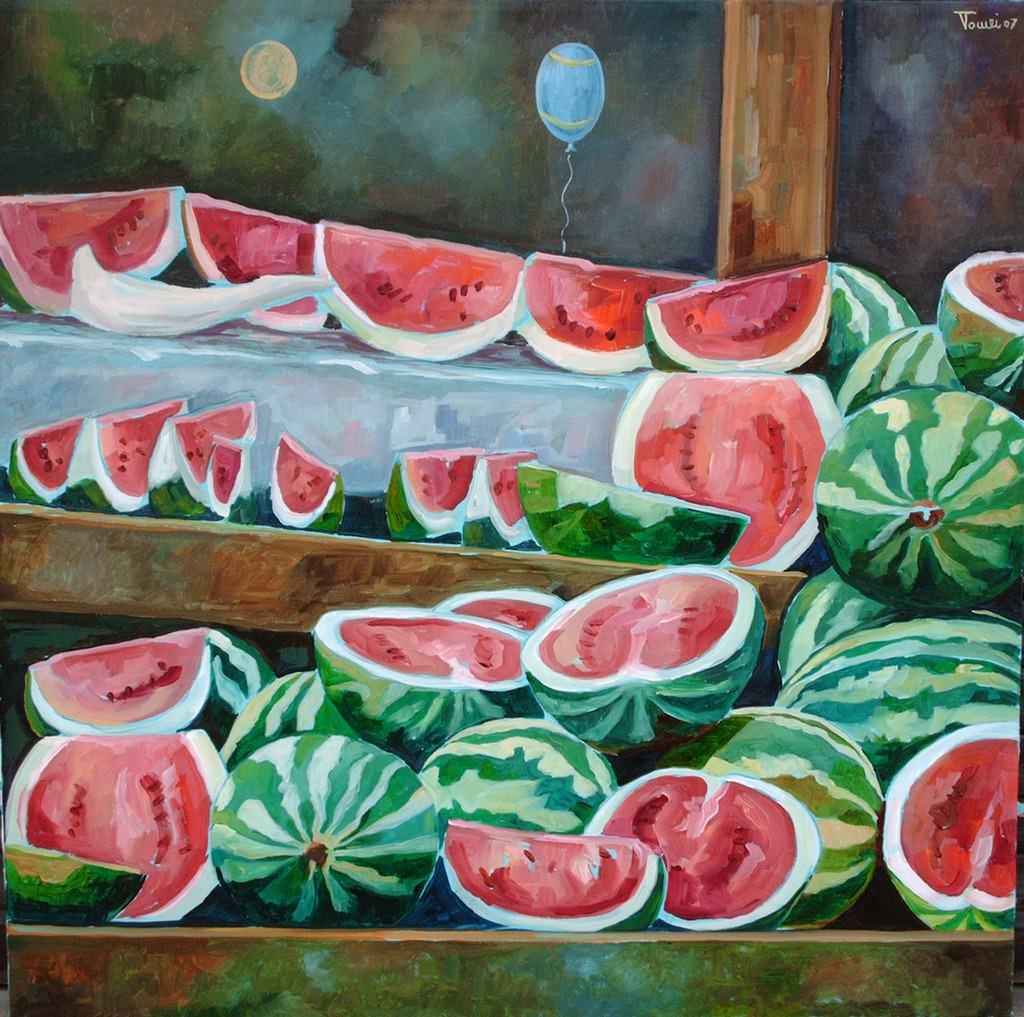 “Non pensare ma osserva” ammoniva il filosofo Ludwig Wittgenstein. La rassegna che Francesco Tomei, allievo di Franco Gentilini e definito da Renzo Vespignani un epigono della scuola romana, dedica al pensiero meridiano sembra raccogliere la lentezza perspicua di uno sguardo mediterraneo, che attraversa oggetti, situazioni, eventi, persone nella solarità dell’istante, senza nostalgia del passato ma proiettandosi invece nella pluralità dei tempi futuri. In un interessante laboratorio sperimentale, pittura e filosofia cavalcano immagini mobili, fluide, quasi saettanti, dove pensiero e cose depositano i loro linguaggi in mutuo ascolto. Nell’estasi che si alimenta dell’energia della natura, l’artista ospita la complessità di un mondo instabile e tuttavia fonte di equilibrio, tra solidità della terra e libertà del viaggio, tra misura e dismisura. Creatura del sociologo Franco Cassano, il pensiero meridiano esplode nell’agorà dei colori, dove si raccolgono e dialogano 10 disegni e 7 olii. Seguace dell’astro che cattura in ogni sua veste, Tomei esplora piazze, mercati, borghi marini, apprendendo la ricchezza del camminare assorto, in cui la pittura si stratifica nel fuoco delle immagini, eterne metamorfosi del destino. Ad ogni angolo, la memoria sostiene l’interminabile conversazione dei silenzi dell’arcobaleno. Sfilano cocomeri che Tomei, cittadino del sole, scopre tutto assorto nella rêverie di chi assale bancarelle policrome, soggiogato dalla luce che penetra densa tra persone e universi; sorridono mercati come luoghi di scambio di pensieri in dono; vìolano la ritrosia antiche mura porose, garanti di affetti e sentimenti, che si riesumano nei jeans di un anonimo pescatore o del naufrago della vita. Un’arte non mimetica ma narrativa, capace di configurare le frontiere come spazio del richiamo e dell’integrazione tra culture e di dare forme alla pluralità delle vite che i tanti Mediterranei dischiudono. In quel particolare momento, in cui il sole alto - paradossalmente - sembra oscurare la visione degli umani, finzioni colorate fecondano il multiversum: lì, animali come l’asino o i gatti regnano con le speranze e le passioni dei migranti, donne sconosciute, prive di vestigia, anelano al sogno del midi e sanno ascoltare il timbro del divino. Paesaggi in germoglio sulle rive recitano l’arborescenza del corallo che mescola le sorti, sorveglia la navigazione, invita gli abitanti a cogliere il polline di ogni giorno. Ed è alleanza tra due danzatori nell’energia melanconica del tango, ritratto dell’ombra che insegue il sole e al contempo ne costituisce presagio.