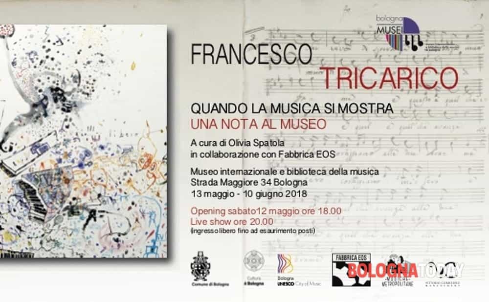 Il Museo internazionale e biblioteca della musica di Bologna ospiterà per un mese - a partire dal12 maggio - la personale di Francesco Tricarico dal titolo “Quando la musica si mostra. Una nota al museo” curata da Olivia Spatola in collaborazione con la galleria Fabbrica Eos di Milano. La mostra propone di fornire un’esperienza multisensoriale tramite un percorso tematico che guiderà i visitatori attraverso alcune del- le sale del percorso espositivo del Museo.