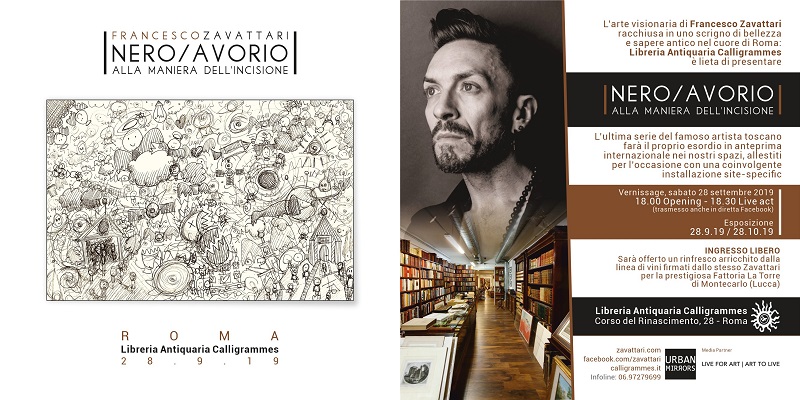 Francesco Zavattari presenta la sua nuova serie “Nero/Avorio. Alla maniera dell’incisione” presso la Libreria Antiquaria Calligrammes nel pieno centro di Roma.