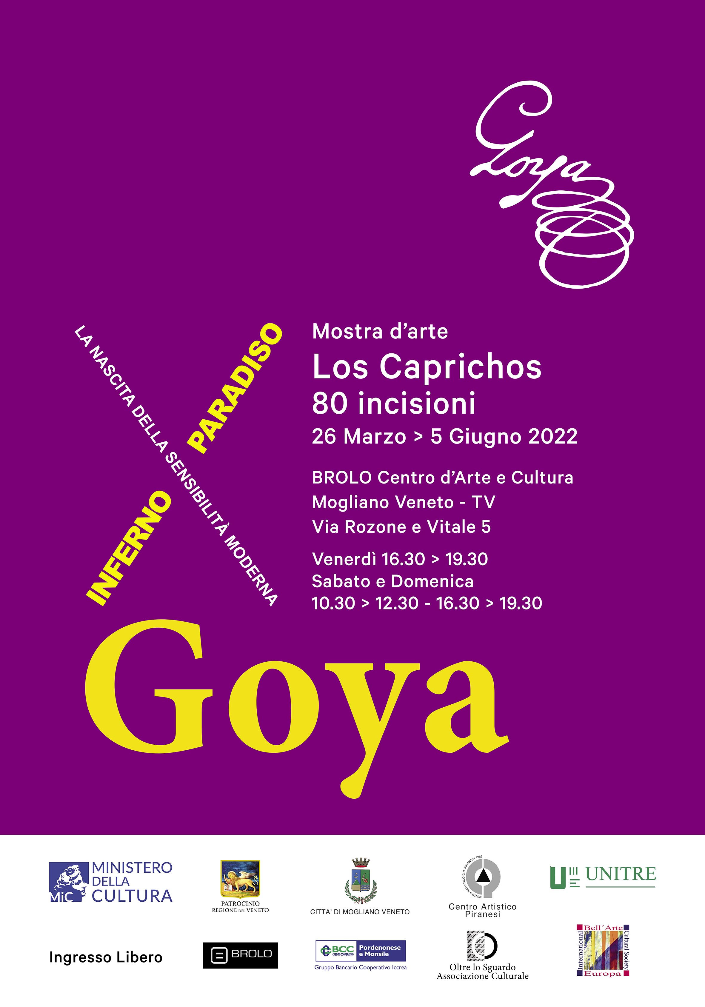 Primo appuntamento il 26 marzo, ore 10:30 al Brolo Centro d'Arte e Cultura di Mogliano Veneto (TV) per l'inaugurazione di FRANCISCO GOYA: LOS CAPRICHOS / I CAPRICCI