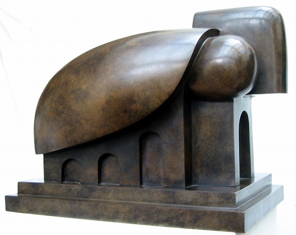 Egli coltiva dunque il profilo delle forme, la sensualità delle curve, le loro pelli di seta, combinandole a linee oblunghe tagliate da segmenti e leggere stratificazioni, che generano la tensione delle sue architetture solitamente compatte, ma sempre leggibili, nonostante la loro dimensione metamorfica” sottolinea Gérard Xuriguera.