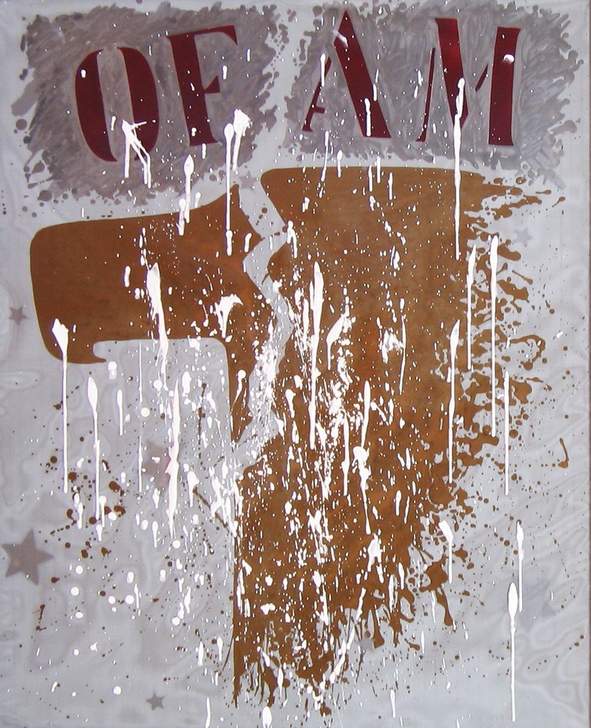 In parete una trentina di pezzi degli anni sessanta e settanta, di cui una serie caratterizzata dai famosi “tulle” trasparenti dall’effetto cangiante che ricoprono le varie simbologie care ad Angeli, con evidenti rimandi a suggestioni optical. Non mancano le dissacratorie colature di gesso sugli emblemi ormai frammentati del potere. Franco Angeli (1935 - 1988), è stato uno dei maggiori protagonisti della “pop art italiana” insieme a Tano Festa e Mario Schifano che videro nella cosiddetta “scuola di Piazza del Popolo” una stagione artistica che bisognerebbe tornare ad investigare, come emanazione tipicamente nostrana ma dal definito respiro internazionale. Un artista che sotto la spinta sessantottina, divenne sintesi estetica per il movimentismo antagonista dell’epoca a cui ora, la generazione dei cinquantenni, ritrova le icone semiologiche tanto contestate e molto spesso odiate.