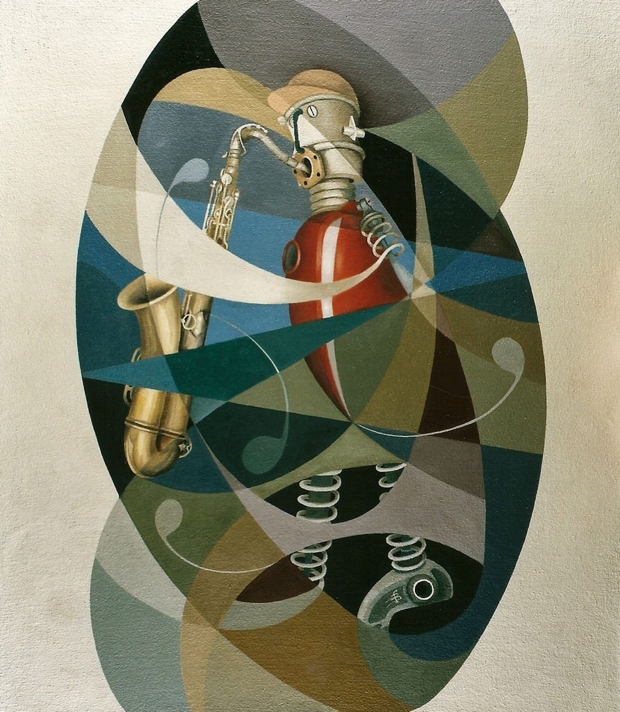 Invenzioni metafisiche, luce onirica, colore e fantasia- come ha scritto di lui il critico d'arte Aldo Albani - sono gli ingredienti del suo fare artistico che possono richiamare correnti quali il Futurismo e il Cubismo.