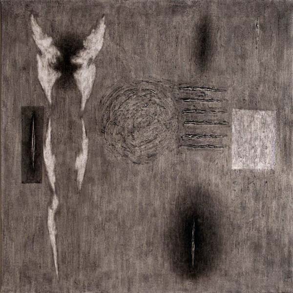 Scrive Nicola Magliulo: ‘ Fin dove sappiamo e possiamo andare, là dove all’ultimo giunge il nostro sguardo, quello è il nostro ‘luogo’. Lo sguardo umano può non chiudersi in un orizzonte determinato: “è un vedere abissi, cose sconosciute, e lo sguardo stesso oscilla tra “mondo” e “non mondo”, scrive Franco Cipriano indicando il suo ‘luogo-non luogo’, un confine (limen) che è soglia. È come se l’artista guardasse ‘escatologicamente’ l’esistente, operando una sorta di epochè del ‘mondo della vita’ che ci riconduca alle condizioni trascendentali di un altro esistere possibile. Anche le rappresentazioni del corpo umano, nelle sue opere, vengono oltrepassate perché si dia un corpo trascendentale: ‘sagome’ di corpi appaiono in relazione al Mistero da cui provengono, corpi che possono apparire solo trasfigurati. Cipriano rappresenta in Dimora un fondo quadrato nero da cui emana, senza ondamento, una sovrabbondante luminosità nella cui scia appare una figura corporea; ancora, in Occidente, una sequenza di figure umane riflettono diversamente il cuore di tenebra della luce oscura dell’Origine. Analogamente, le figure angeliche dimorano tra il Tempo e la compossibilità dell’Inizio; la loro preghiera è un’invocazione affinché l’addio a ‘quest’mondo incontri nuove terre, nuovi cieli, vera vita; o apra alla visione di un Giardino antecedente che forse non è mai stato, ma che è anche un possibile ad-veniens. La ricerca di Cipriano, dunque, lungi dal trovare dimora in una contemporaneità pacificante, si volge ad una interrogazione e rappresentazione dell’Originario; perché essa possa darsi, si deve rinunciare alla volontà di potenza del gesto artistico, alla “superbia del rappresentabile”, per lasciar essere le tracce materico-segniche della Materia trascendentale. Le sue sono icone di un Sacro irreligioso cui si perviene attraverso una de-creatio: cancellare tutto per poter compiere una epistrofè, per risalire all’Origine. Cipriano abbandona ogni mimesis e cromatismo naturalistici: è piuttosto la dialettica tra il grigio, ‘la materia della pietra e del vento’, e il nero a mostrare ciò che è essenziale: nero che non è così ‘cieco’ da non poter farsi fonte; grigio che, a sua volta, può declinarsi, ‘illuminarsi’ di bianco, farsi canto, lasciare che accada un’epifania, si apra una finestra sull’Assoluto. Assente appare, nelle sue opere, la rappresentazione della successione temporale lineare e orizzontale: il fare dell’artista è piuttosto rivolto all’Immemoriale, che è alla radice della memoria e dal cui fondo ‘chiama’; Passato arcaico e immemorabile, che eccede la catena dei ricordi, pace di un Oblio indimenticabile. Irrelativo, Indifferente Inizio, absolutus da un molteplice determinato; Materia indeterminata e originaria, che non ha una forma per poter ospitare e produrre tutte le forme; che non è una tra le cose, né è tutte le cose. L’Originario appare ineffabile, inesprimibile non perché troppo difficile da comprendere ma perché determinarlo compiutamente è ridurne il Possibile/Impossibile; dal suo fondo provengono Profezie ‘altre’ da quelle della Tradizione religiosa. Cosa annunciano? Forse la possibilità che il Silenzio dell’Origine, che avvolge figure e forme nelle opere dell’artista, si riveli Suono, e che da esso provengano infiniti mondi possibili, vibrazioni risonanti di cui possiamo porci in Ascolto, o ascoltarne l’Eco anche in una umile e muta pietra. Per questo ascolto Cipriano allestisce, con una ‘liturgia’ che è insieme riferimento ad alcune sue opere e al tratto distintivo del suo fare artistico, un Templum: al suo interno pone un’installazione che raccoglie, in una relazione ‘armonica’ dettata da Tyche, elementi arche-tipici; su di essi ‘cade’ una luce che li evidenzia per contrasto con l’ombra che li circonda, con un ineludibile rimando alla raccolta intimità dello spazio sacro dell’altare (Ikonostasi): là dove si può ri-cor-dare il nostro possibile essere non solo mortali, e lodare la purezza semplice dell’Invisibile.