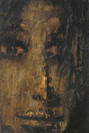 Il pittore crea una superficie fortemente espressiva, attraverso la stratificazione di carta velina, colla, olio e acrilico, completata dalla stesura di bitume liquido, funzionale alla realizzazione di quegli effetti chiaroscurali che compongono il timbro terroso della sua tavolozza.