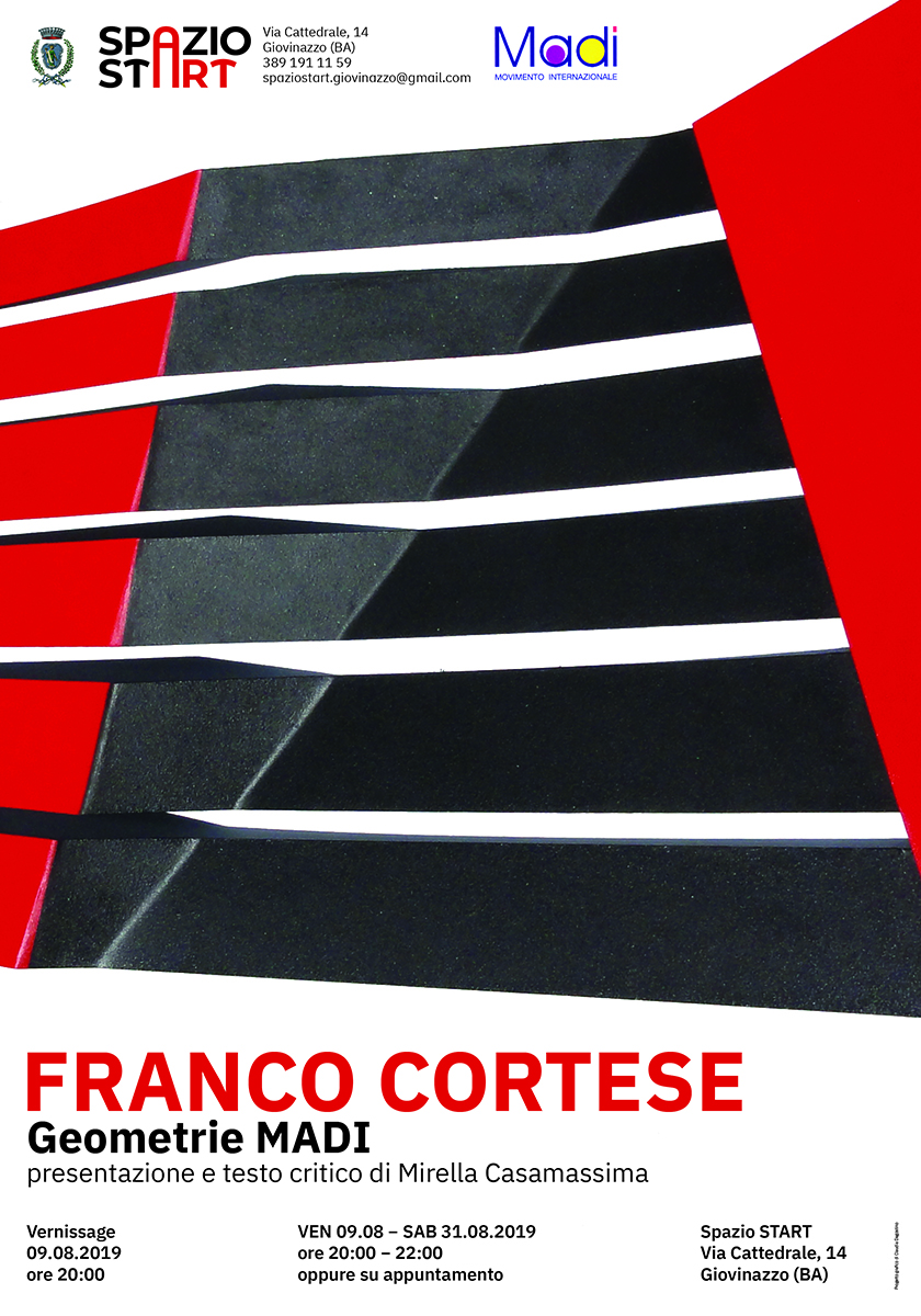 Franco Cortese entra nel 2004 a far parte del Movimento MADI Internazionale e si conferma sulla scena dell’arte mondiale nel suo ruolo di protagonista. Da anni la ricerca geometrica è parte essenziale della sua opera che assume forme multidirezionali.