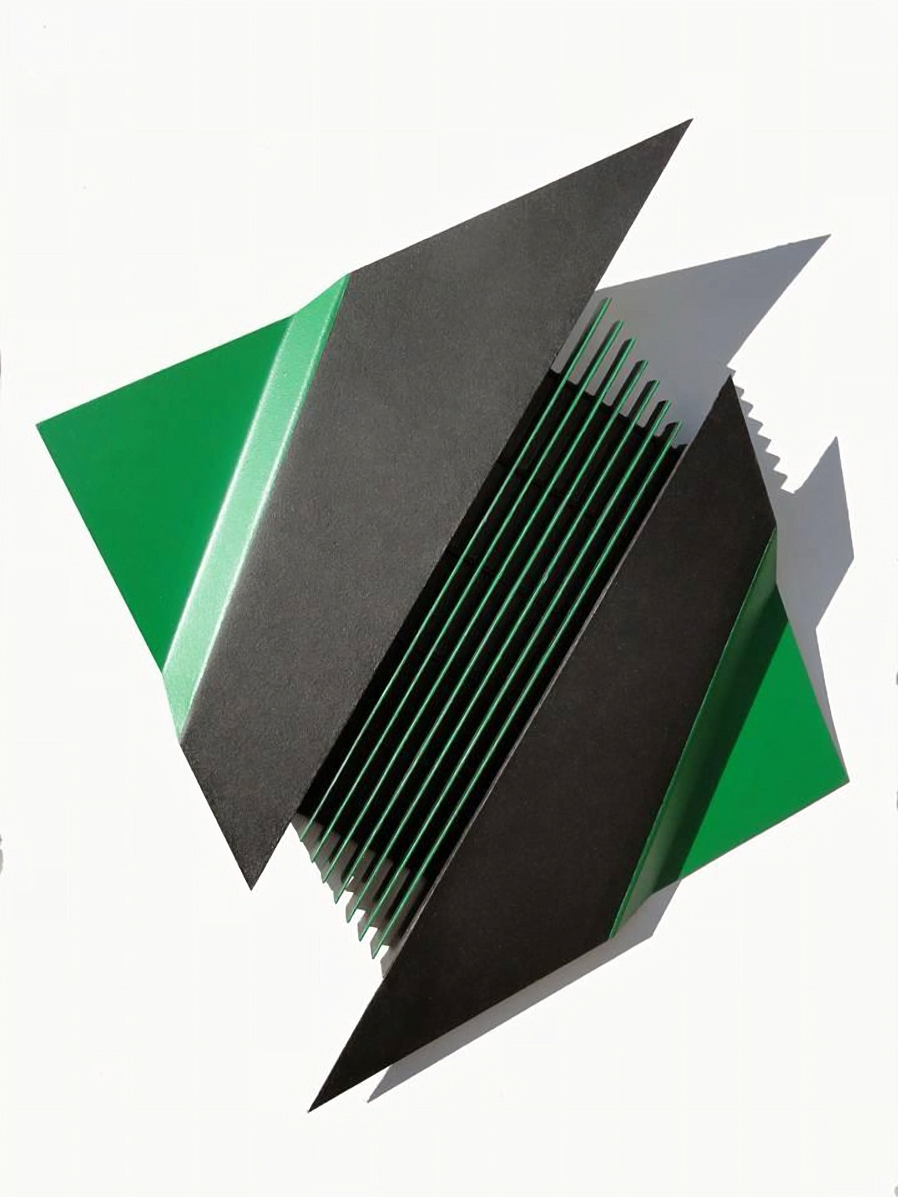 Vincenzo Mascia, con un approccio più architettonico e mentale, costruisce microcosmi complessi e rigorosi, dove piani, sovrapposizioni, slittamenti e colore definiscono strutture autonome, perfettamente calibrate nel loro equilibrio interno. Nelle sue opere la tridimensionalità è la condizione naturale della forma: un modo per far sì che la luce incida la superficie, ne trasformi la percezione e generi nuove relazioni tra i volumi. La sua geometria gioca con la logica costruttiva, introducendo varianti, ritmi, contrappunti che riconducono l’immagine oltre la rappresentazione, verso un’invenzione pura.