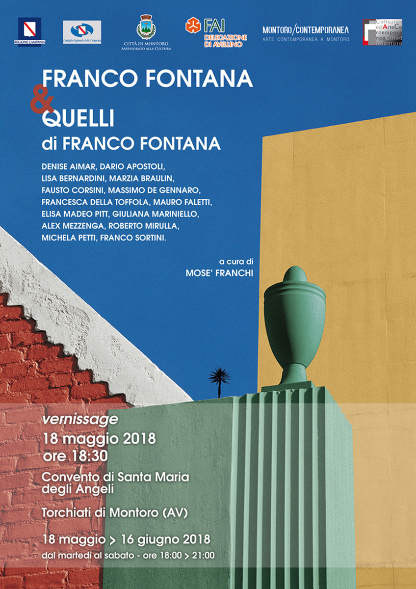 Sarà inaugurata venerdì 18 maggio 2018 alle 19,00 - presso gli spazi espositivi dello splendido Convento settecentesco di S. Maria degli Angeli a Torchiati di Montoro (AV) – la mostra di fotografia ‘FRANCO FONTANA e Quelli di FRANCO FONTANA’, a cura di Mosè Franchi e Franco Sortini. La mostra costituisce il momento espositivo più prestigioso del quarto ciclo di MONTORO CONTEMPORANEA, la rassegna ideata e diretta da Gerardo Fiore e patrocinata dal Comune e dall’Assessorato alla Cultura della Città di Montoro (AV).